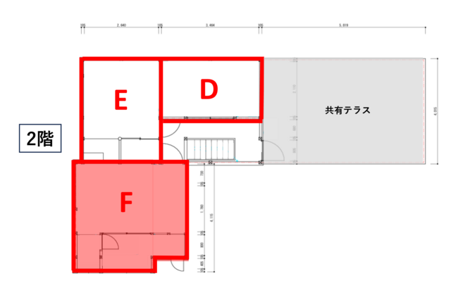 F区画は、2階の奥にあるお部屋で、落ち着いた雰囲気のサロンなどにもおすすめ!